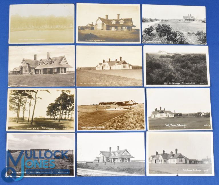 Interesting collection of Aldeburgh Golf Links (Est 1884) b&w golfing postcards (12) - notably England's second oldest heathland course and perhaps the 30th oldest golf course in the world still on its original golfing ground and also possibly the first golf club in the world where women have always had equal membership and play rights with the men. There are good examples of the various developments of the clubhouse the golf course, various holes, players and caddies et al-6x used incl 1904, 1906, 1910, 1919, and 1969 - by Lankester & Co Tunbridge Wells, F Frith, Photochrom, J Salmon, E T W Dennis & Sons, Empire View Production