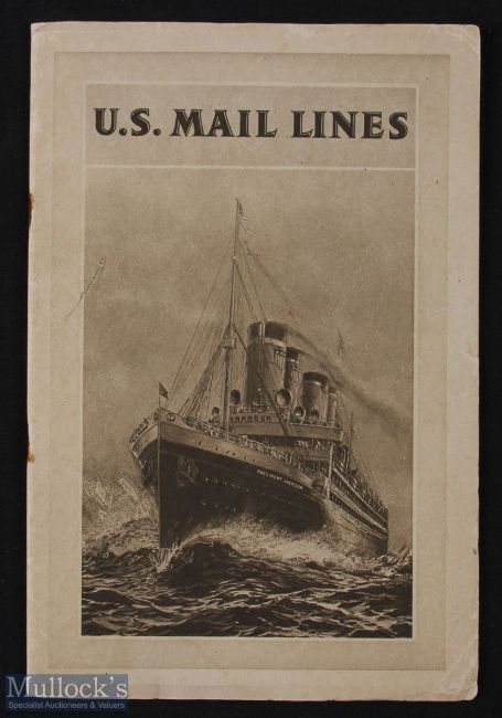 US Mail Lines early 1920s - an Impressive 24 page Publication, with 21 photographs of their ships being SS GEORGE Washington and SS America within each their Lobbies, State and Public rooms, cabins etc. Also Map plus detailing text. Printed on art paper in pictorial card cover. Size 6 1/4" x 9 1/4"