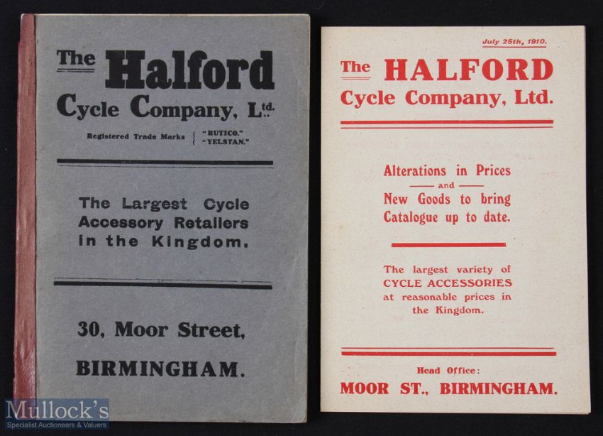 Halford Cycle Co Ltd, Moor Street, Birmingham 1910 - An extensive 112 page catalogue illustrating and detailing with prices their range of 13 different Bicycles. Plus a large range of Lamps, Saddles and various components and fittings. Even cross referencing index at back. In card cover, size 5" x 7"