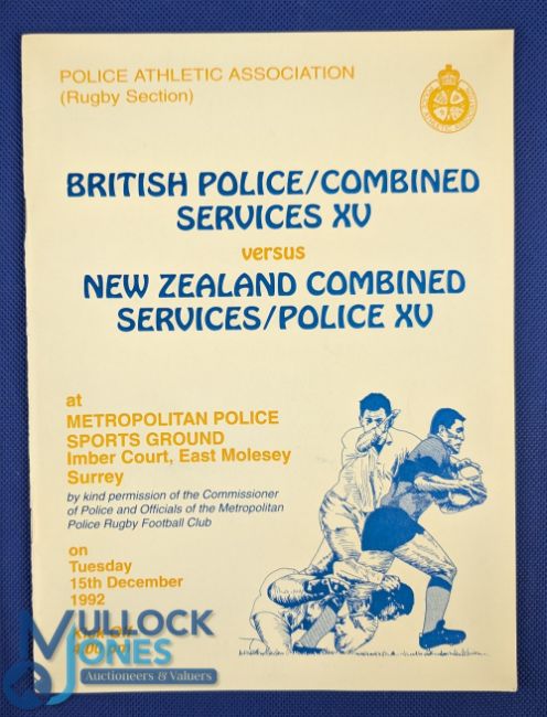 1992 British Police v NZ Combined Services Rugby Programme: In this large glossy, from the Met Police Ground, we find Paul Hull, Kenny Waters, Huw Williams-Jones, Martin Bayfield, Tim Rodber and Dean Richards, while for the visitors one Constable Steve Hansen was to be found. Anyone hear of him later on? Excellent