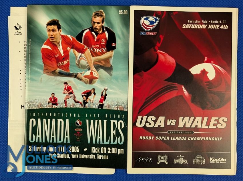 2005 Wales in N America Rugby Programmes (2): v the USA at Hartford and Canada at Toronto, inc team inserts. Excellent