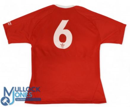 Jonathan Thomas, Cap no.1013, Scarlet no.6 Wales Rugby Jersey: Unnamed but cap and player numbered, match-prepared short sleeved for Wales v France, RWC warm-up match, Aug 2007. Brains sponsor, Reebok make. Near mint