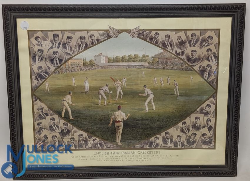 England v Australian Cricketers July 1886, a good reproduction print, in large frame - size 77cm x 101cm under glass. Collection recommended