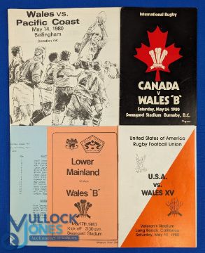 1980 Wales in North America Rugby Programmes (5): Some harder to find, the issues for the games v the USA (inc inserts), Canada, Pacific Coast, Lower Mainland & British Columbia (single sheet)