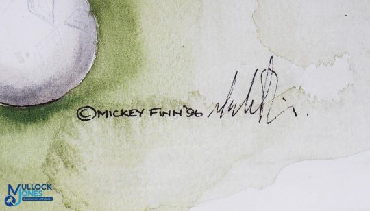 Framed and glazed artwork picture of Ryan Giggs in Manchester Utd colours 11.75" x 17" copyright by Mickey Finn '96 with signature; good. (1)