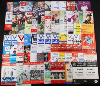 1970s-1990s Rugby League Programmes Collection a good selection with teams of Huddersfield, Leeds, St Helen's, Bradford, Wigan, London, Barrow, Oldham, Batley, Rochdale, Widnes, York, Blackpool in cup, league, charity and visiting international matches a box of #240 with duplicates noted