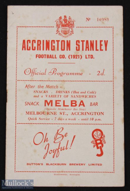 1953/54 Accrington Stanley v Carlisle Utd Div 3 (N) match programme 28 September 1953; fair. (1)