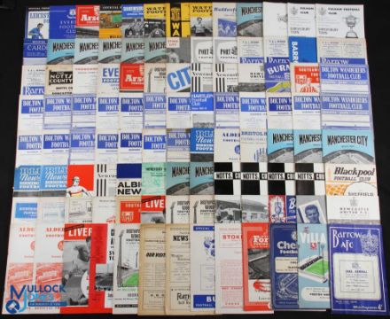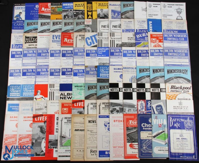 1960-70 English League Football programmes, a mixed lot of league and a few cup matches with noted teams of Watford v Shrewsbury 21st Jan 1961, Wrexham v Shrewsbury 23rd April 1961, Arsenal v Newcastle 27th Feb 1960, Manchester United v Leeds 31st Dec 1966 (worn copy), Exeter v Luton 9th Jan 1960, Bolton v Nottingham 13th Feb 1960, Newcastle v Wolves 9th Jan 1960, Crystal Palace v Real Madrid 1962, plus lots more in mixed condition - fair to good (#145)