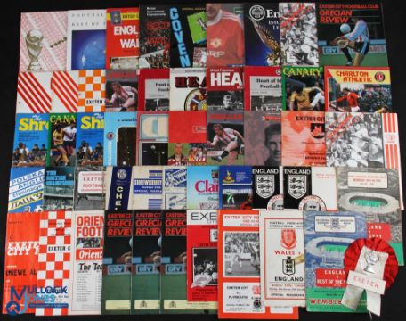 Football Programme Collection, a mixed lot with a qty of Exeter City programmes, c1970 -80s, a few Hearts, a 1989 Poland v England, Italia 90 Northern Ireland v Scotland 1983, Cyprus v Poland 1977, football league v rest of the world 1987, England under 23 v Bulgaria 1970 and more (#50)
