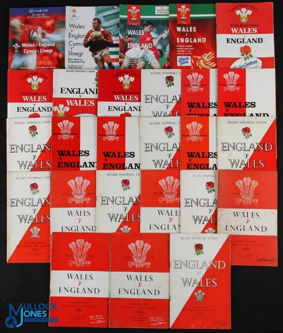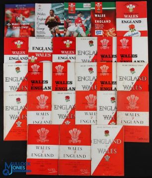 1954-2001 Wales & England Rugby Programmes (26): All there from 1954 to 1976 EXCEPT 56, 61, 62, 65, 70 & 74; and then present are 87-89 inc, 91, 93, 95, 97 & 2001. G/VG, super lot!