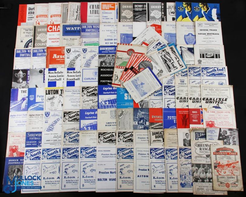 A Collection of 1950-1960s Football Programmes, with noted programmes, Oldham Athletic v Sheffield United 13th Aug 1966, Crewe Alexandra v Manchester City 15th May 1967, Mansfield Town v Accrington 29th Dec 1956, Doncaster Rovers v Blackburn Rovers 8th March 1968, Preston North End v Tottenham 6th Feb 1960, Shrewsbury Town v West Ham United 5th April 1967, Barnsley v Grimsby Town 27th Dec 1954, Carlisle United v Sparta Prague 13th Dec 1967 and much more