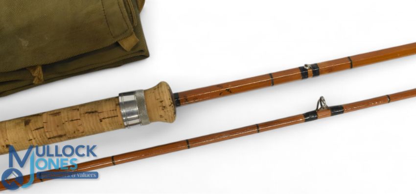 Hardy Alnwick "The Wanless" Palakona split cane spinning rod No E63134, 7ft 2pc, 14" handle with alloy sliding reel fittings, agate lined butt/tip rings, MCB (Rod in Hand logo). Light use