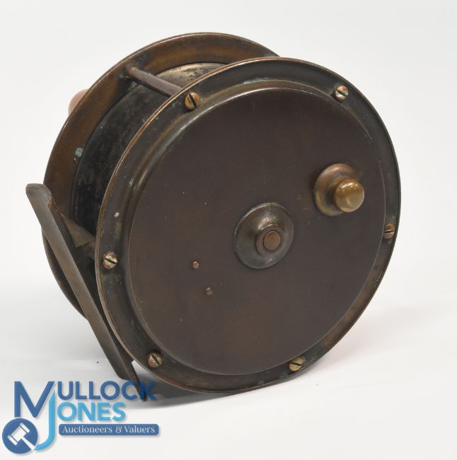 Unnamed Allcocks Summit brass and ebonite fishing reel, horn handle, constant check, good finish