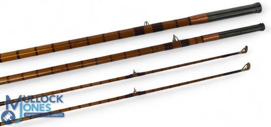 Hardy Alnwick "The High Regan" Palakona steel centred split cane salmon fly rod No D4626, 15ft 3pc with spare tip, 26" handle with alloy universal reel seat and collars, clear agate butt/tip rings, twist lock joints, MCB, looks refurbished