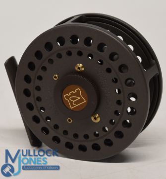 Hardy Viscount LA 5/6 alloy fly reel, 3-3/8" diameter. Rear drag adjuster, smooth check click, new and unused in makers draw string pouch, with papers and outer box