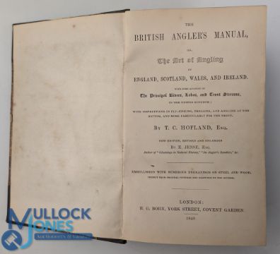 1848 The British Anglers Manual: The Art of Angling in England, Scotland, Wales and Ireland - T C Hopland, quarter leather binding with marbled boards in good condition, one part loose blank page contents clean and bright