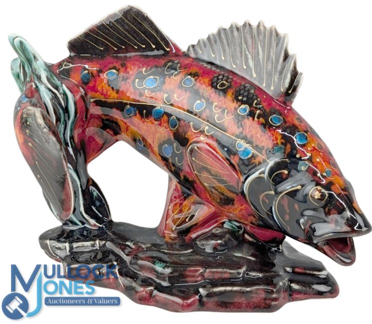 AHAP Anita Harris Art Pottery Ceramic Fish Trial Piece, multi coloured signed with backstamp. Stoke on Trent - 21cm x 29cm