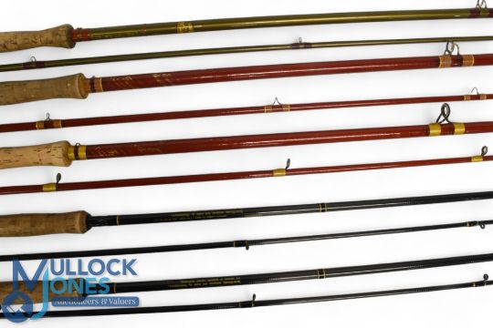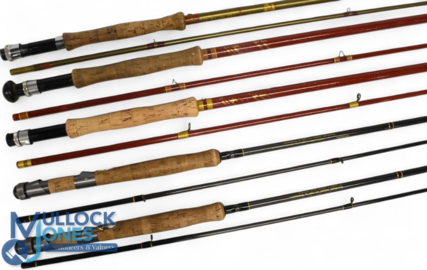 A collection of fly rods, as follows: Edgar Sealey "The Glane" trout fly rod, 9ft 2pc alloy reel seat, cloth bag. 2x Davenport & Fordham hollow glass Farstrike trout fly rods, 9ft 2pc, alloy reel seat, lined rings throughout, both with cloth bags. 2x Shakespeare Sigma Supra 1725-285, carbon trout fly rods, 9ft 6" 2pc line 7/8#, alloy reel seat, lined rings throughout, both in MCBs, light use. (5)