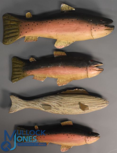 4x Wooden Carved Fish - no apparent maker's details, various sizes from 13" up to 17" approx.