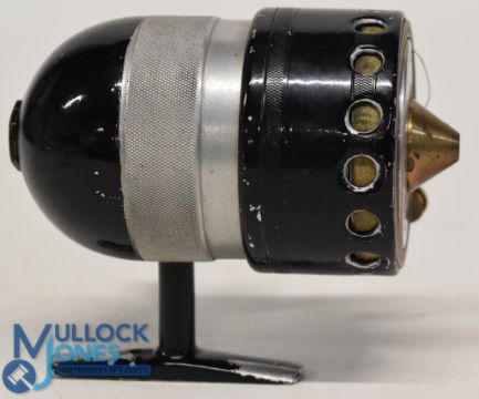 Extremely rare Milward Torpedo light casting reel by Milward Bartleet, early model with alloy/brass spool, adjustable center cone, manual line pick up on ventilated flier, RHW, alloy foot stamped "Made in England Reg No. 758850", good, rare example for the threadline collector.
