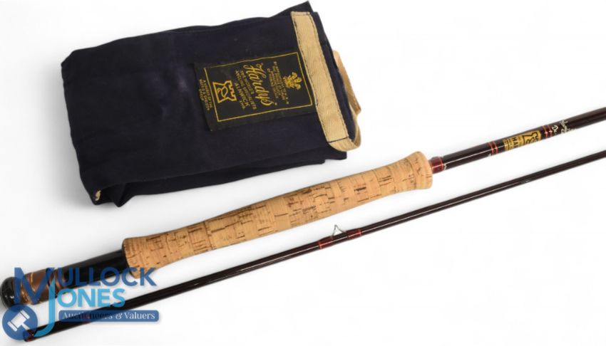 Hardy Alnwick "The Hardy Graphite" Deluxe trout fly rod 9ft 6" 2pc, line 8/9#, alloy uplocking reel seat with carbon insert and collar, agate lined butt ring, MCB. Light use