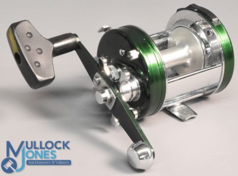 ABU Ambassadeur 6500 C3CT Mag-Elite multiplier reel in green finish, foot stamped 070009125, large counter balance handle, star drag, appears overall in good, clean condition
