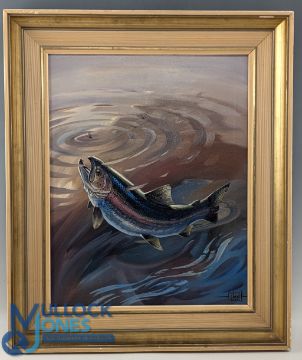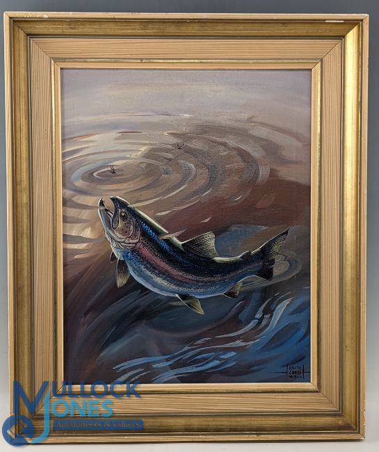 Keith Cresswell (1940-1989) - Trout catching Mayflies, oil on canvas framed, signed lower right, 49 x 39 cm