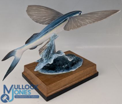 Royal Worcester Figurine of a Flying Fish limited edition of 300 modelled by R Van Ruyckevelt, on wooden stand - one repair noted to tail fin tip in fair/good condition. Collection recommended