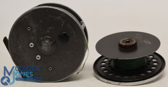 Hardy Marquis Salmon No.2 alloy fly reel, ribbed brass foot, rear drag adjuster, metal check, runs smooth, in zip case plus spare spool.