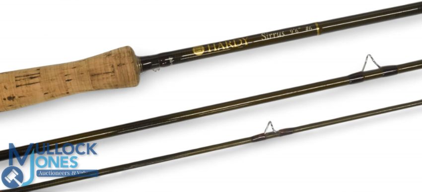 Hardy Alnwick "The Sirus" carbon trout fly rod 9ft 6" 3pc line 6#, alloy uplocking reel seat and collar, fighting butt, lined stripping rings, MCB and Cordura tube. Light use