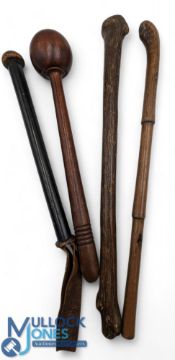 4x Period Wooden Fishing Priest Mallets Cosh Tools, one with leather straps, two having lead weighted heads, a good selection with age, up to 47cm long (4)