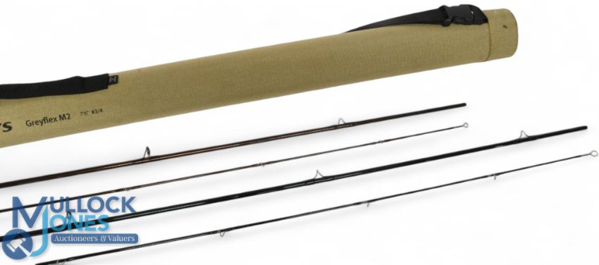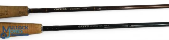Greys Alnwick Grey Flex Mk2 carbon trout fly rod 7ft 6" 2pc line 3/4#, alloy uplocking reel seat with carbon insert and collar, lined butt ring, correct MCB and triangle Cordura tube. Very light use. Greys Alnwick Grey Flex carbon trout fly rod 8ft 6" 2pc line 4/5 #, alloy uplocking reel seat and collar, lined butt ring, MCB. Light use (2)