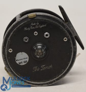 Hardy Bros "The Zenith" alloy trout fly reel 3 5/8" wide spool, ventilated 2 screw latch, milled rim tensioner, constant check, 2 screw line guide. Tatty MZC, missing one pawl and spring. Signs of wear, runs well