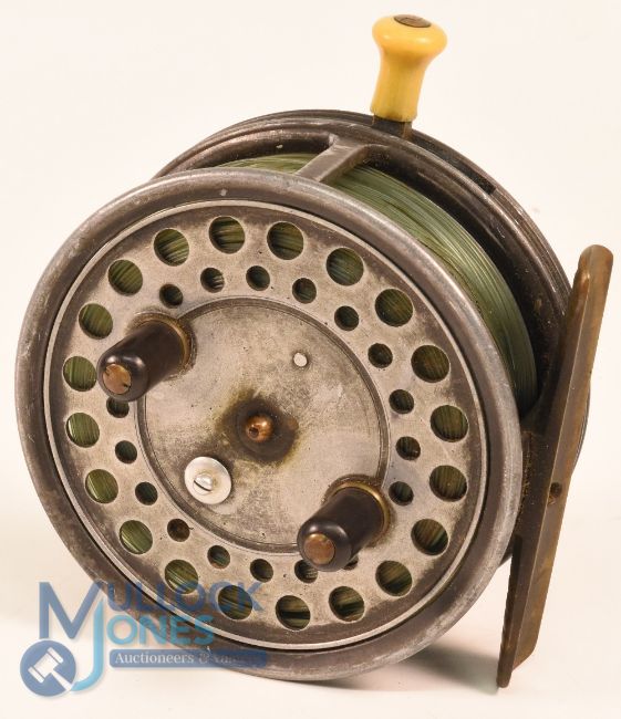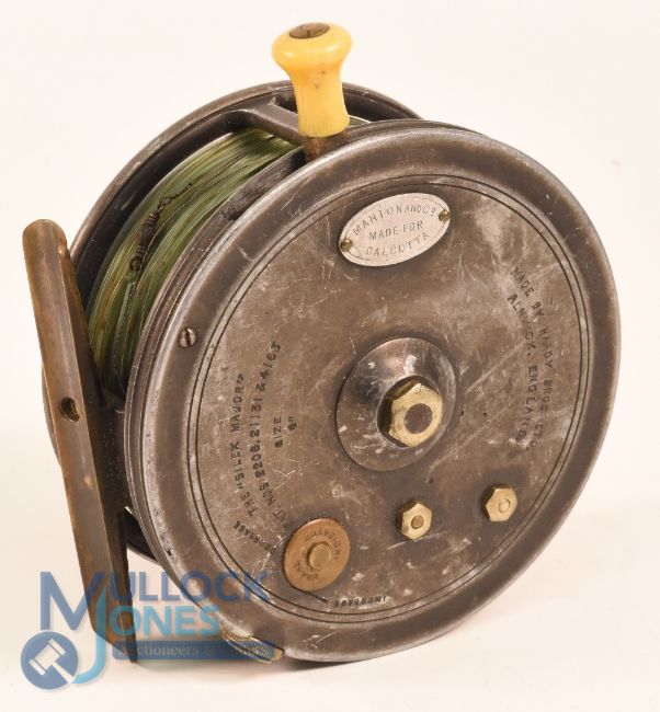 Hardy Bros 'The Silex Major' 4" alloy bait casting reel ribbed brass foot, twin ebonite handles, rim brake/check lever, quick release spool, rim tensioner and brake dial to rear plate, appears with surface wear, o/w in good overall condition