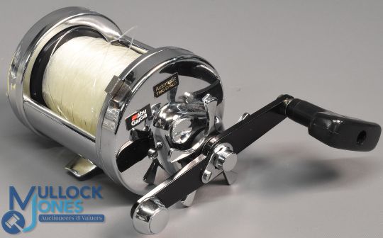ABU Ambassadeur 9000C Big Water Series multiplier reel chrome finish, foot stamped 01-00-05, star drag, appears in good, clean condition, c/w rod saddle clamp, papers, in maker's card box