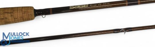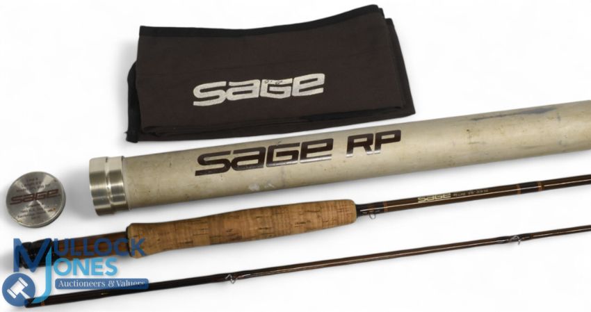Sage USA 696 RPL Graphite III 3 1/8oz carbon trout fly rod, 9ft 6" 2pc line 6#, alloy uplocking reel seat with wood insert, lined butt ring. MCB and alloy tube, light use