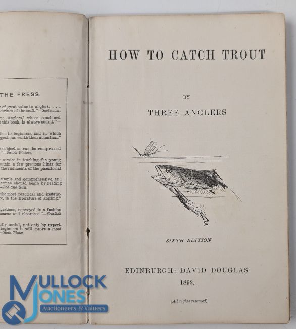 How To Catch Trout by Three Anglers 1892, 6th edition printed by David Douglas Edinburgh, 84 paged board covered book, covers show signs of age, contents clean