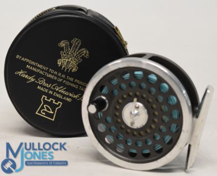 Hardy Bros "The Marquis 5" alloy trout fishing reel, 3" ventilated spool, 2 screw latch, black handle, rear tensioner, constant check, 'U' shaped alloy line guide and foot, MZC. Very light use