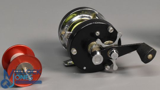 Abu Ambassadeur 5000C multiplier, reel seat No 740302, counter balanced handle, spindle tensioner and spare spool. Very light use, runs smoothly