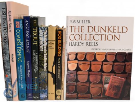 Ten Fishing Books - The Dunkeld Collection Hardy Reels 2004 - Jess Miller, How to Build and Repair Your Own Fishing Rods 1969 - G Lawton Moss, Rod Building 1975 - Alan Vare and Ken Whitehead, Introduction to Angling 1967 - Eric Taverner, The Management of Angling Waters 1977 - Alex Behrendt signed, The Trout A Fisherman's Natural History 1993 - Rupert Watson, Angling Afloat 1989 - Stephen Harper, The New Book of Coarse Fishing 1994 - Allan Haines and Mac Campbell, Fishing Forays 1997, Farlows, Fishing Forays 1992 - mixed condition