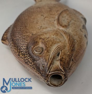 A Brampton salt-glazed stoneware spirit flask, c1840-50 realistically modelled as a fish, 27cm overall length