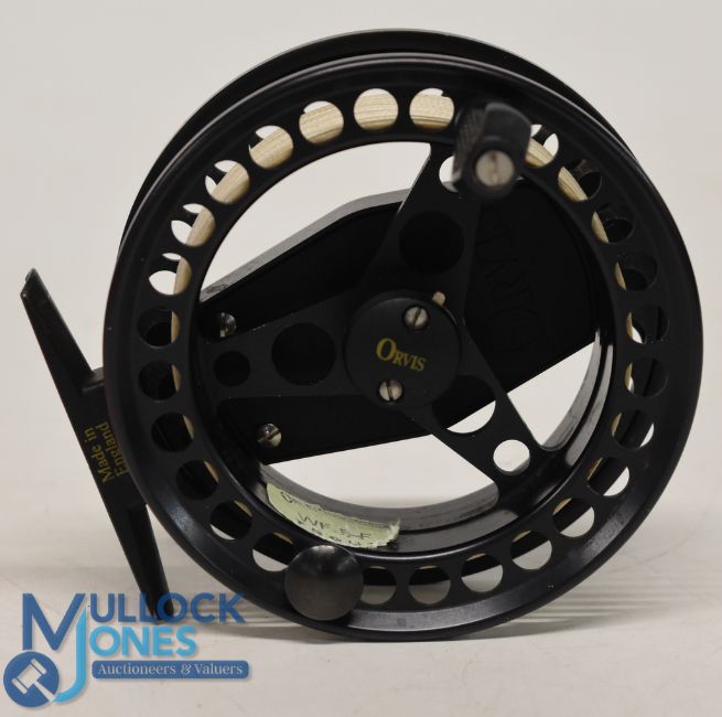 Orvis USA Battenkill large arbor size III alloy fly reel 3 3/4" wide ventilated spool, 2 screw latch, counter balanced handle, rear tensioner. MZC, very light use