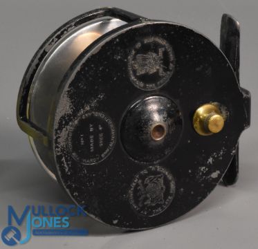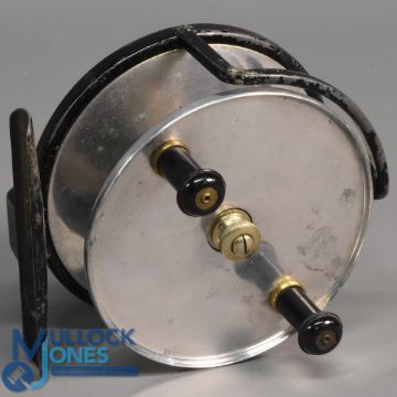 Hardy Bros "The Goodwin" No 1 alloy sea fishing reel 4" solid spool with brass central locking screw, twin ebonite mushroom handles, brass on/off check, fixed frame line guide, constant check, light wear. Runs well
