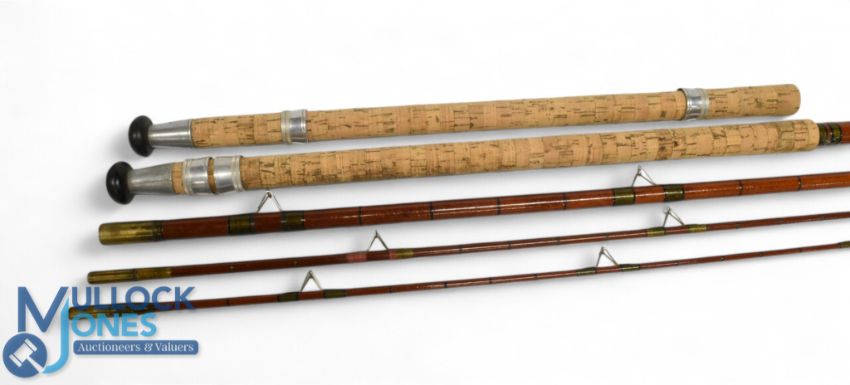 Allcocks "The Billy Lane" hollow glass match rod, 14ft 3pc with spare tip and extra handle, 24" handle with alloy sliding reel fittings, stand off rings, red agate butt/tip, MCB. Light use