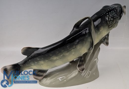 Royal Dux Model of a Pike with fish in its mouth - 820-27 mark to base, 51cm wide, in good condition