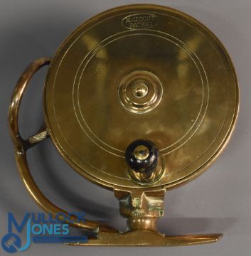 Mallochs Patent all brass side casting reel 3 1/4" spool, on/off rim check with horn domed handle. Very stiff but runs