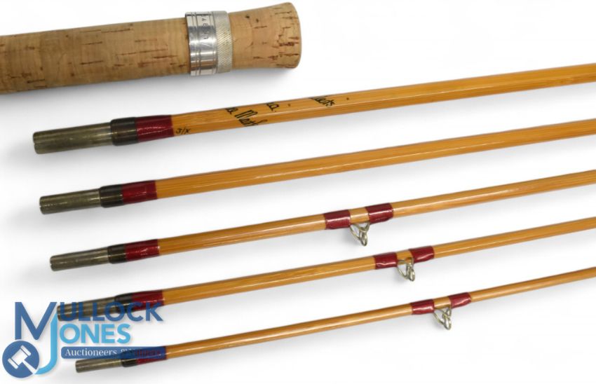 Hardy Alnwick rare "The Travellers" Palakona split cane combined sly and spinning rod J4831, 8ft 10" fly rod line 5#, 6ft 10" salmon spinning rod 6 1/4oz, 6ft 10" trout spin/fly rod 5oz, 10" handle, alloy reel fittings, agate tip rings, MCB. Very light use. Superb