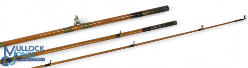 Millward Redditch "The Flyversa" split cane salmon rod No 8292, 12ft 10" 3pc, 28" handle, alloy down locking reel seat, lined rings throughout, MCB. Interesting rod, butt/middle sections, 4" top section, 4ft 10" with original ferrule stoppers. Looks original