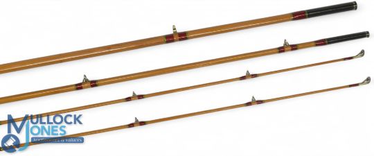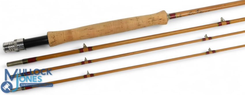 Hardy Alnwick fine "Itchen" Palakona split cane trout fly rod 9ft 6" 3pc, line 6#, with spare tip, alloy uplocking reel seat and collar with carbon insert, agate lined butt/tip rings, cloth bag. Looks unused