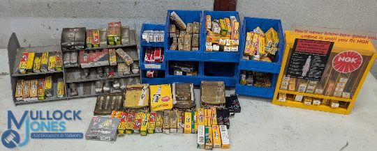 Automobilia - Automotive / Car Parts - selection of various Spark Plugs, incl Bosch, NGK plus display stand, MG, Denso, Laser, most appear in boxes requiring a light dusting - see images - approx. 80+ 1x bag